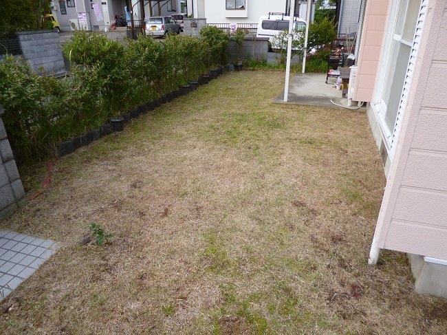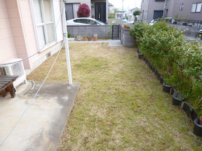 ◯施工前 BEFORE …きれいな芝のはえたお庭だったのですが、ご家族の成長とともにお庭も少し変わることになりました。