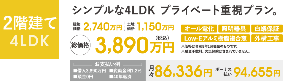 | 土地 | 1号地:166.08㎡(50.24坪) 3号地:166.83㎡(50.46坪) |